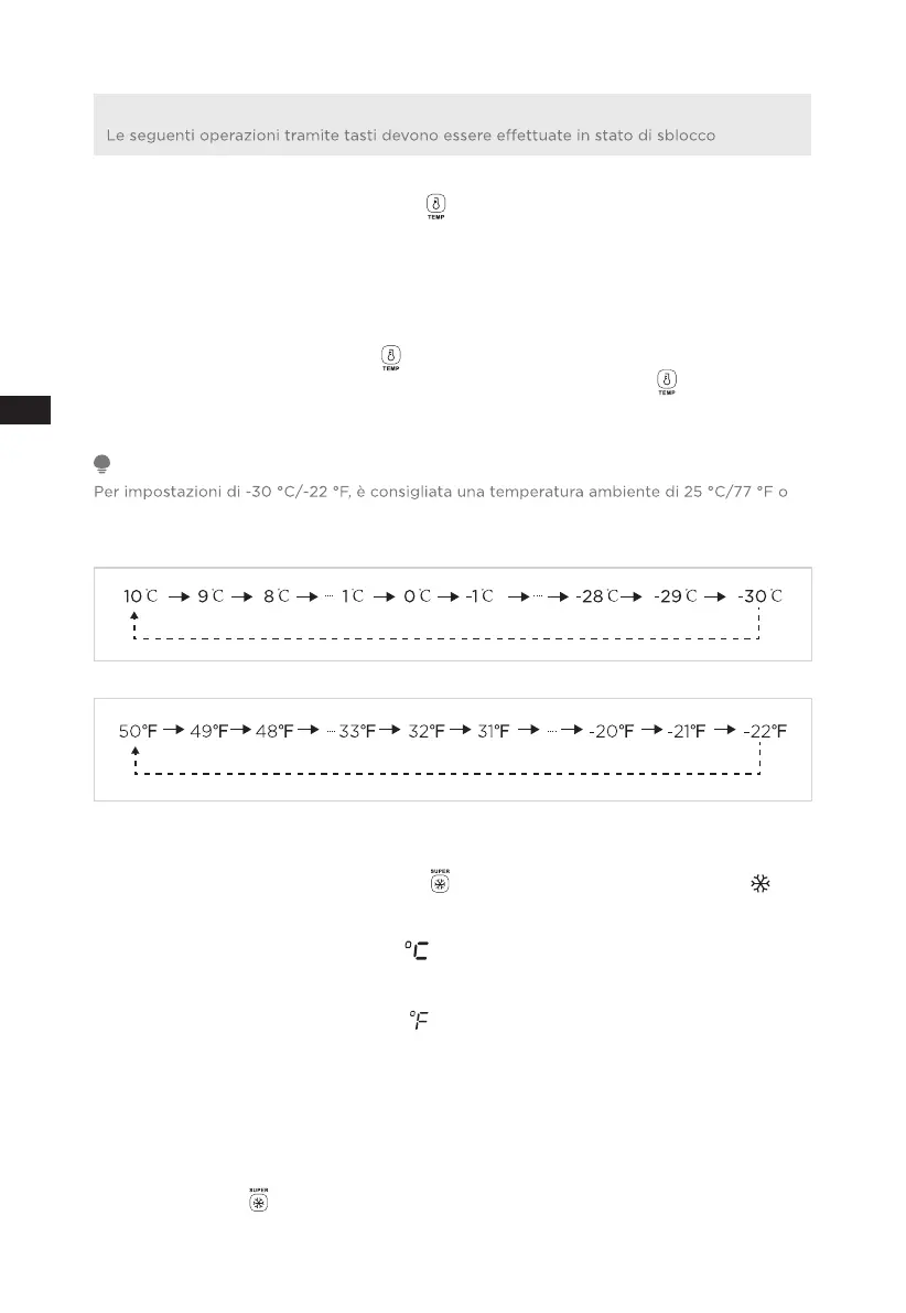 • Tenere premuto il tasto temperatura " " per tre secondi per passare dalla