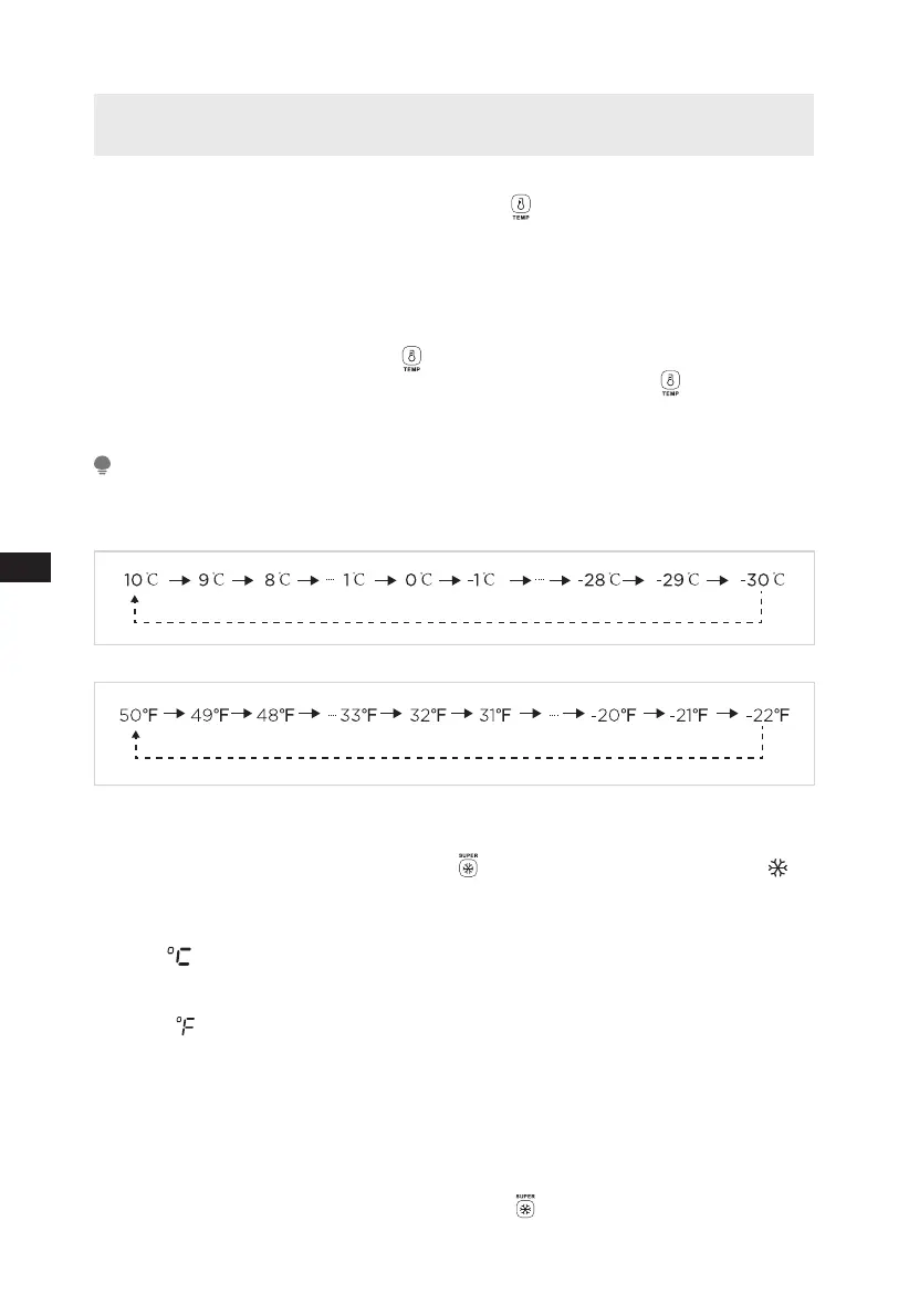 καταψύκτης μπαούλο. Κάθε φορά που πατάτε το πλήκτρο θερμοκρασίας “