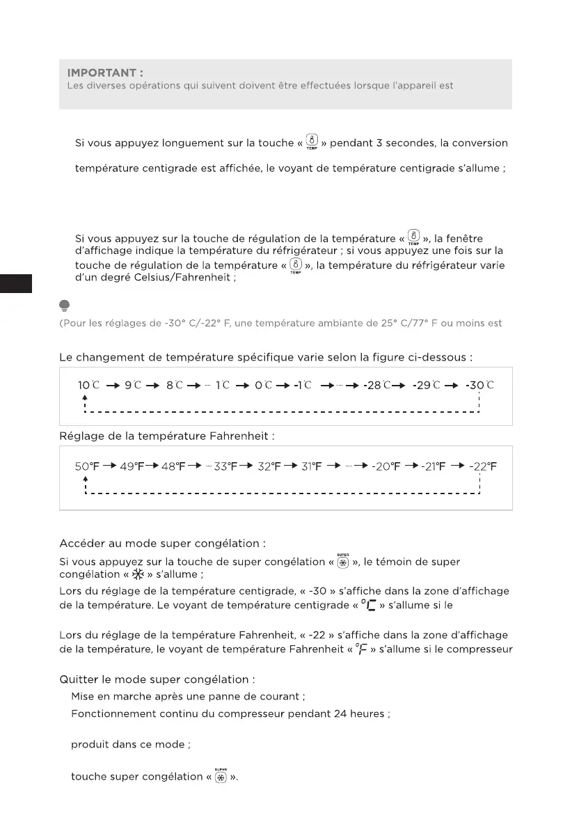 Si vous êtes en mode super congélation, vous pouvez quitter en appuyant sur la