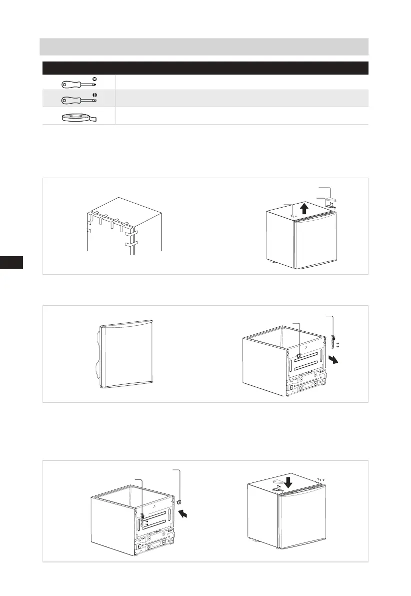 Wyjąć żywność z balkoników na drzwiach. Umocować drzwi taśmą.