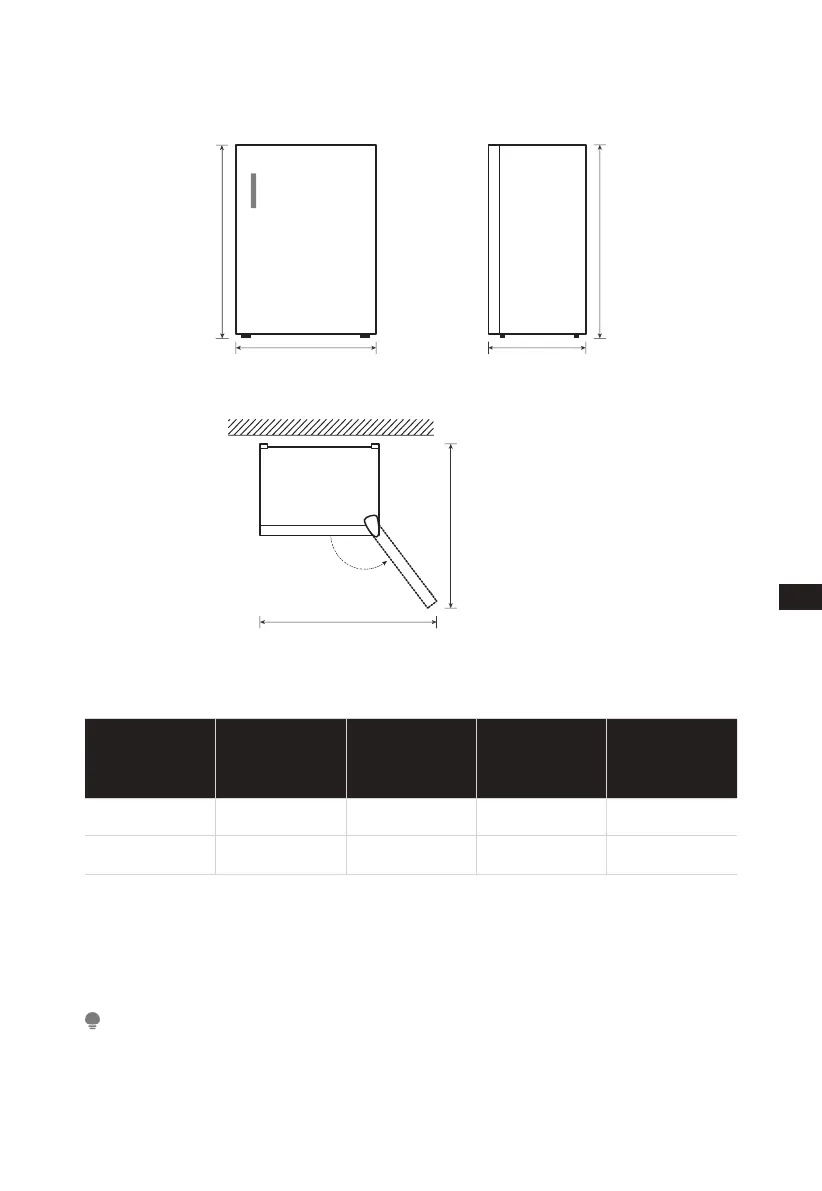 Dijagram potrebnog prostora (kada su vrata otvorena i zatvorena)