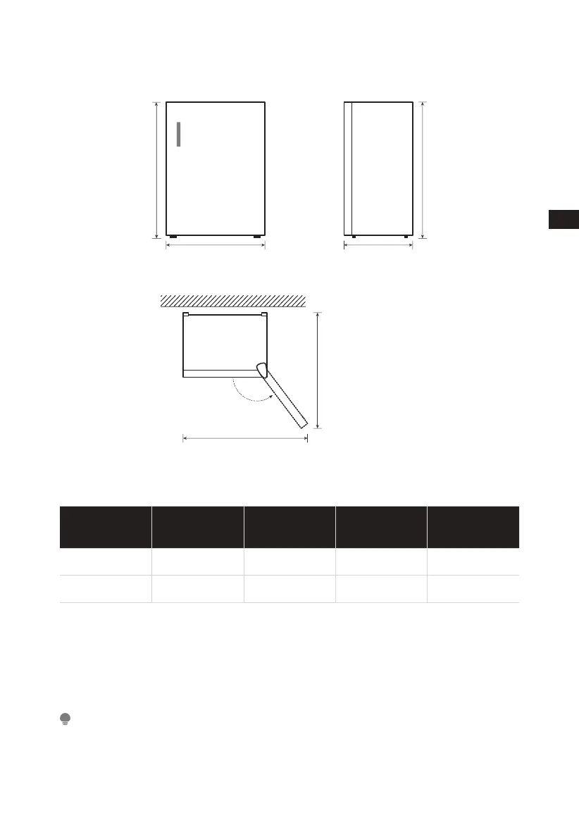 Platzbedarf (bei geöneter und bei geschlossener Tür)