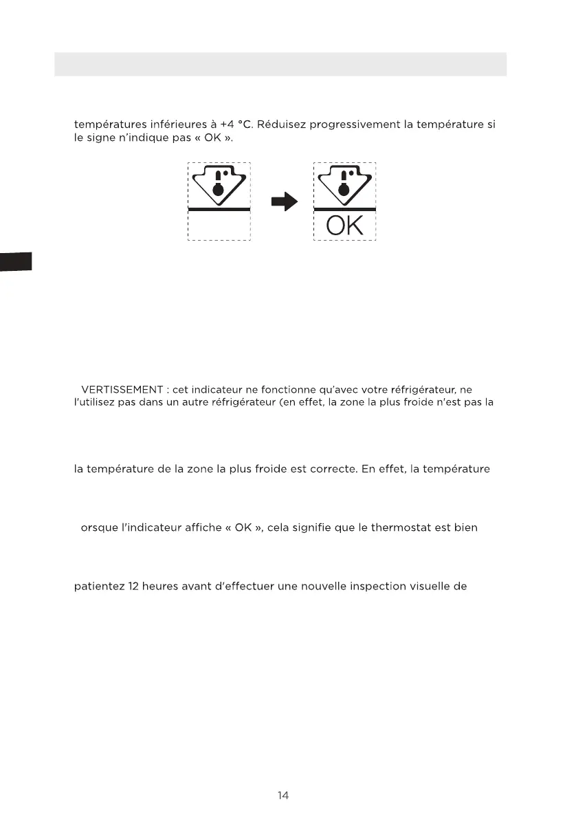 • L’indicateur de température OK peut être utilisé pour déterminer des