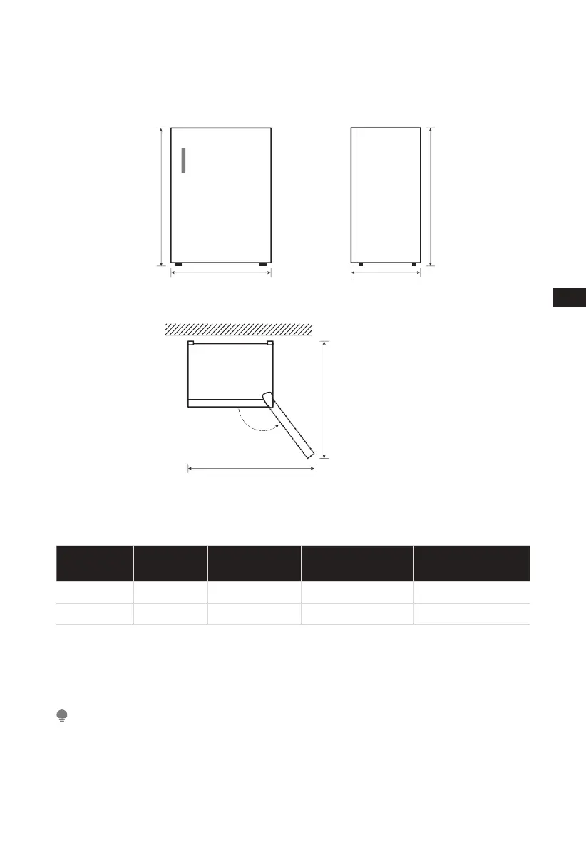Diagrama de espacios necesarios (cuando la puerta está abierta y cuando la puerta