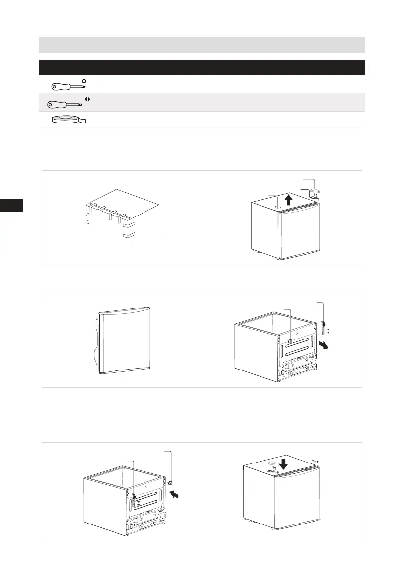 de ajuste de la bisagra superior y retire la bisagra superior; mantenga la puerta en