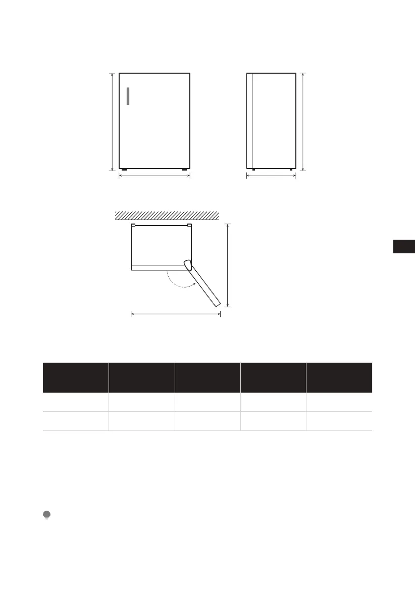 Διάγραμμα απαιτούμενου χώρου (όταν η πόρτα είναι ανοιχτή και όταν η πόρτα είναι κλειστή)