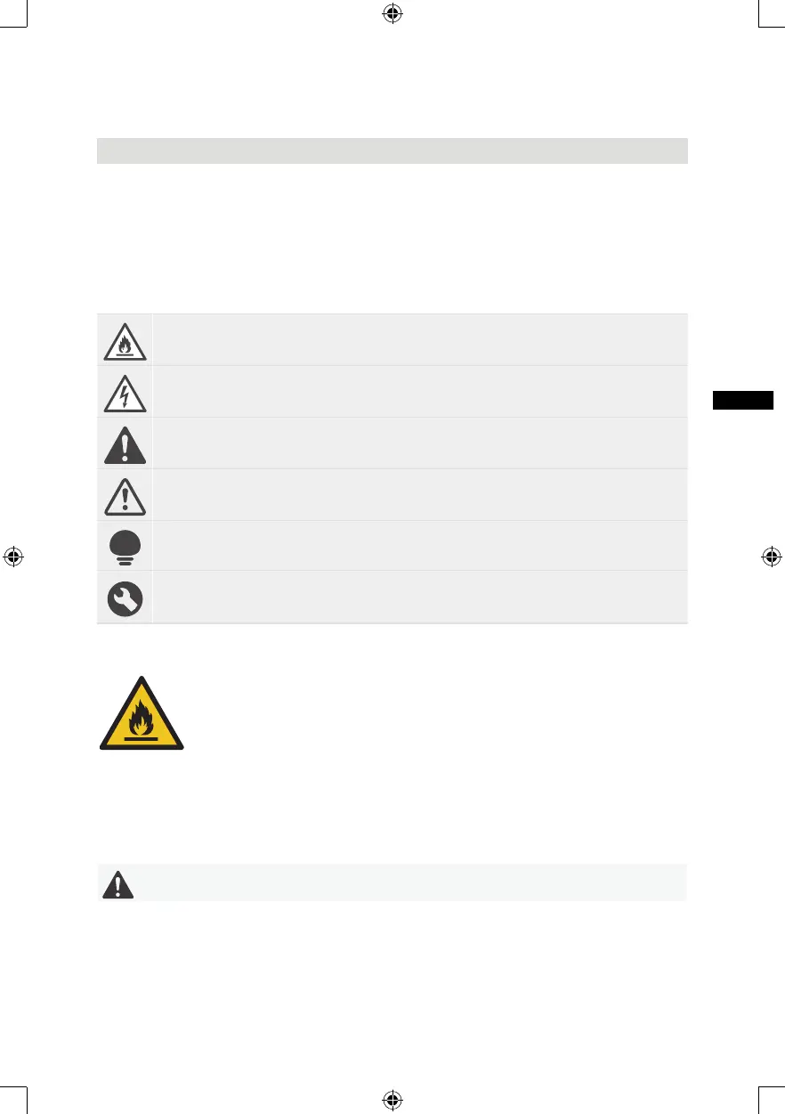 Este símbolo le alerta de materiales inflamables que pueden prenderse y provocar un incendio si no