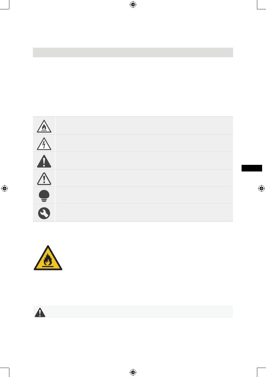 Ten symbol ostrzega o łatwopalnych materiałach, które mogą się zapalić i spowodować pożar, jeśli nie