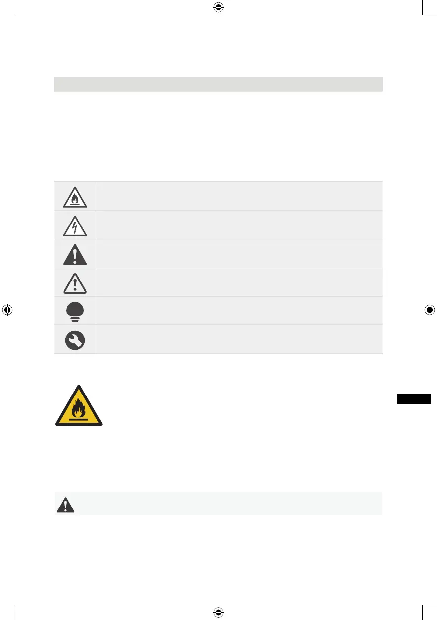 Този символ предупреждава за запалими материали, които могат да се възпламенят и да