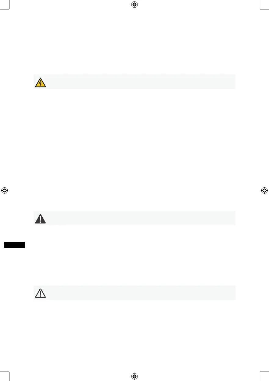 • Ако захранващият кабел е повреден, трябва да бъде подменен от производителя, негов сервизен представител или