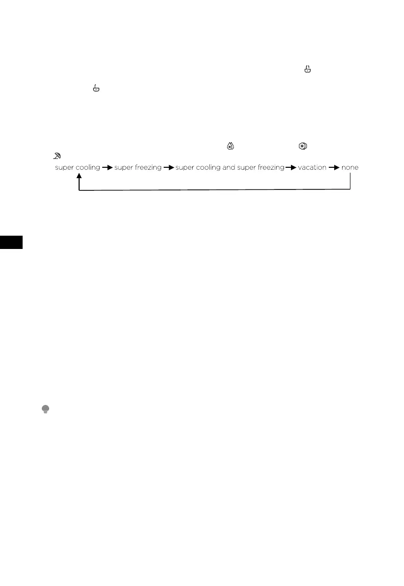 • Press the key “MODE” , and the super cooling , super freezing and vacation