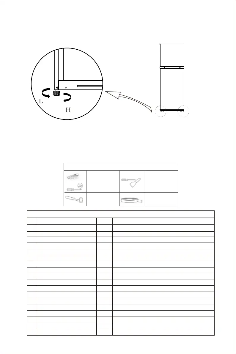 b. Turn the feet counterclockwise to lower the refrigerator;