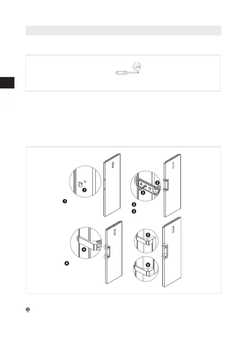1. Remove the screw hole caps 1 from the door, and use cross screwdriver to fix