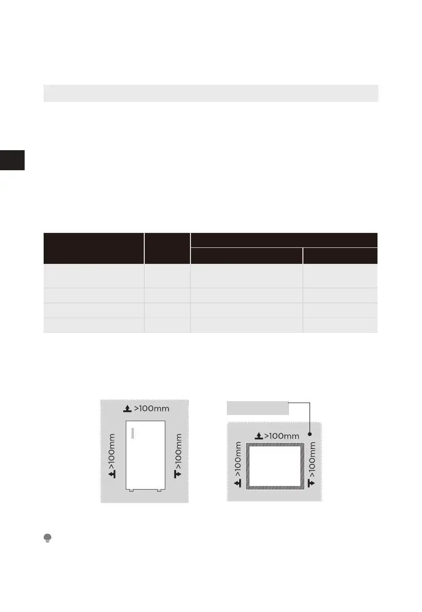 Installation des Geräts mehr als 100 mm Abstand zu jeder angrenzenden Wand.