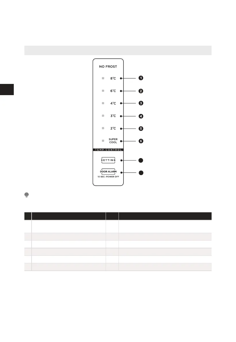 B Standby (Standby)-Taste 2 Die eingestellte Temperatur beträgt 6°C