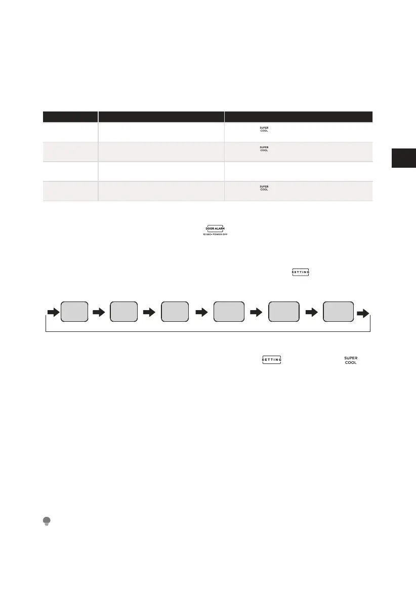 • Betreten: Drücken Sie im Kühlschrankmodus die Taste , bis das Symbol