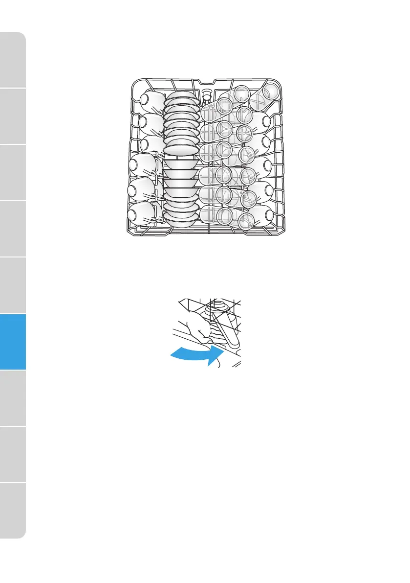 Coloque las tazas y los vasos en las filas, entre los dientes. Colocarlos