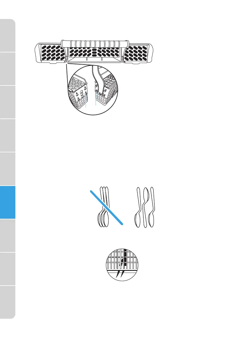 some pointing up and some down to avoid nesting. Spray cannot reach