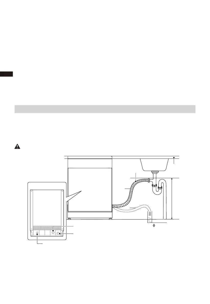 geknickt oder gequetscht wird. Die Höhe des Abflussrohrs muss weniger als 1000 mm