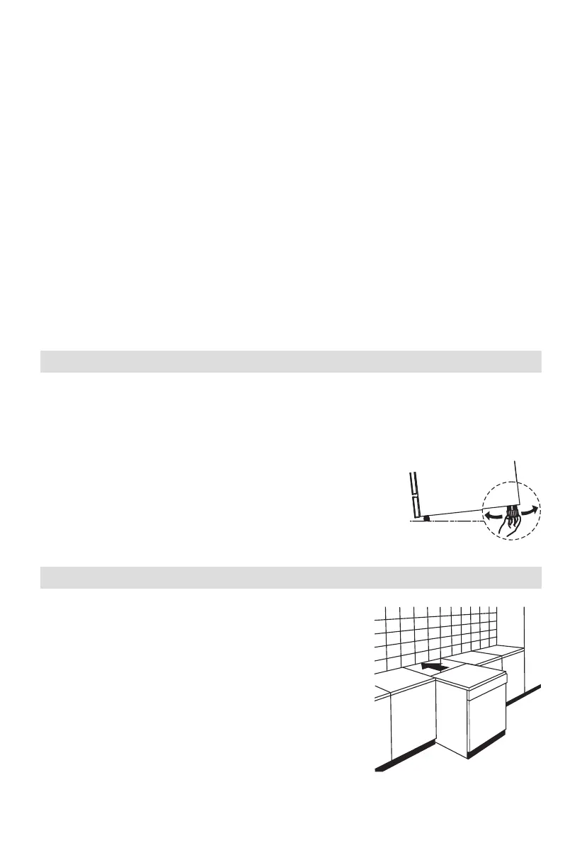 la pared y los lados junto a los gabinetes o paredes adyacentes. El lavavajillas está