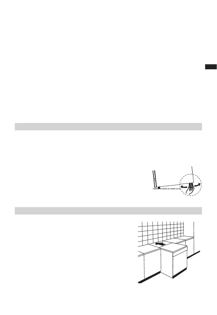 behind it, and the sides, along the adjacent cabinets or walls. The dishwasher is