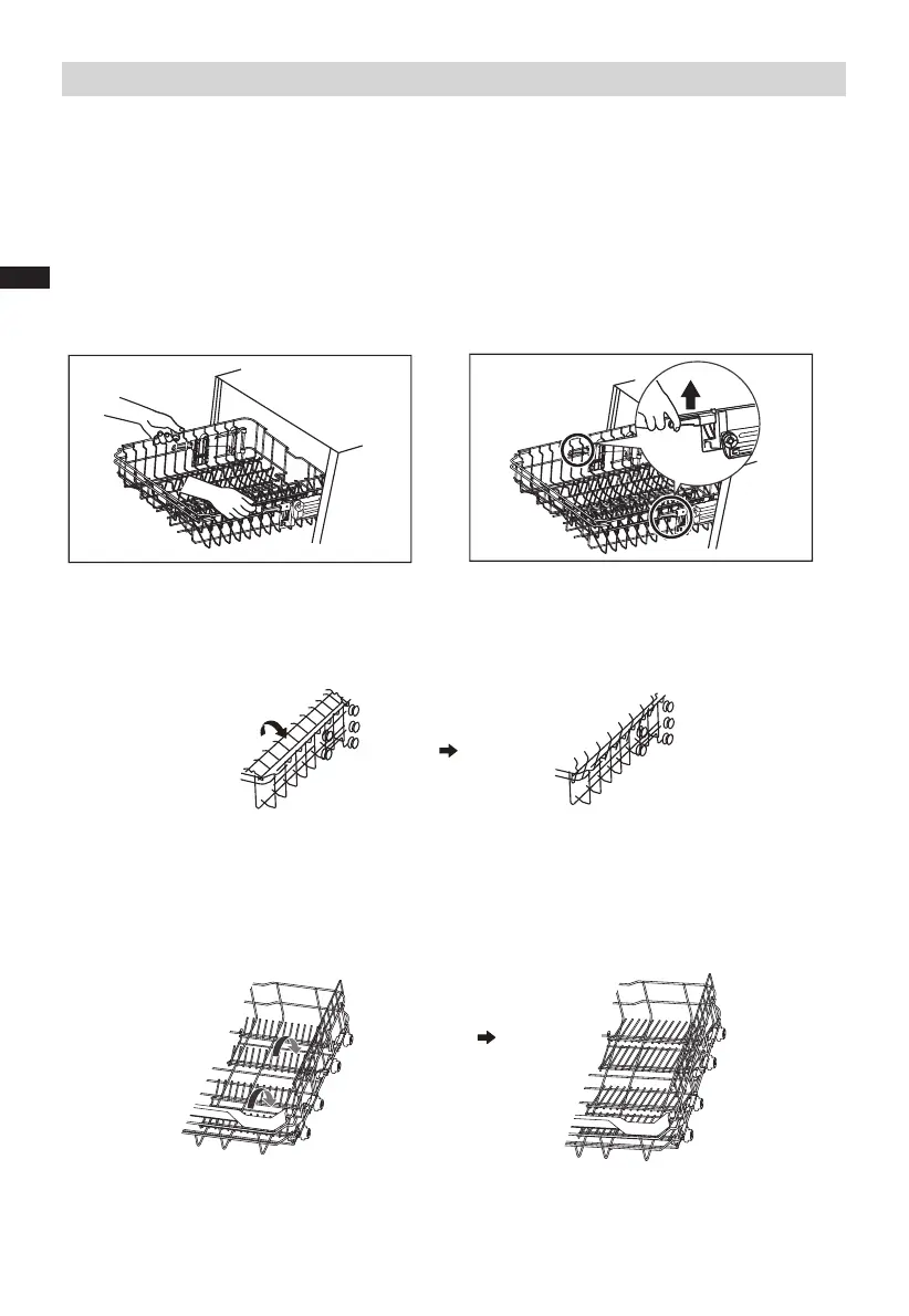 Pour régler la hauteur du panier supérieur, procédez comme suit :