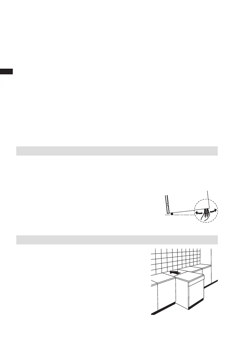 derrière lui, et les côtés, le long des armoires ou des murs adjacents. Le lave-vaisselle