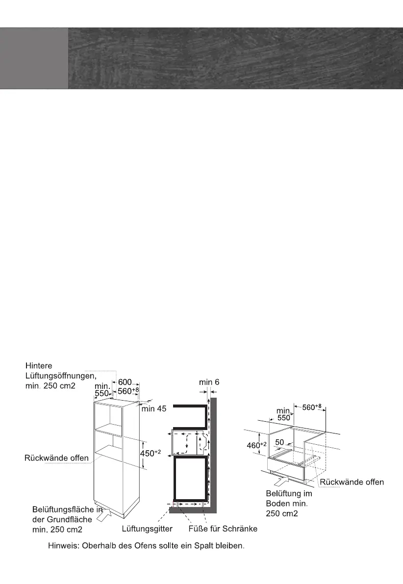 5. Der Einbauschrank muss an der Vorderseite eine Lüftungsöffnung