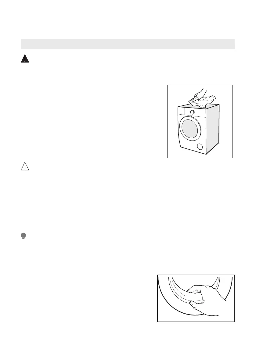 chlorine-free detergents. Never use steel wool for cleaning the drum!