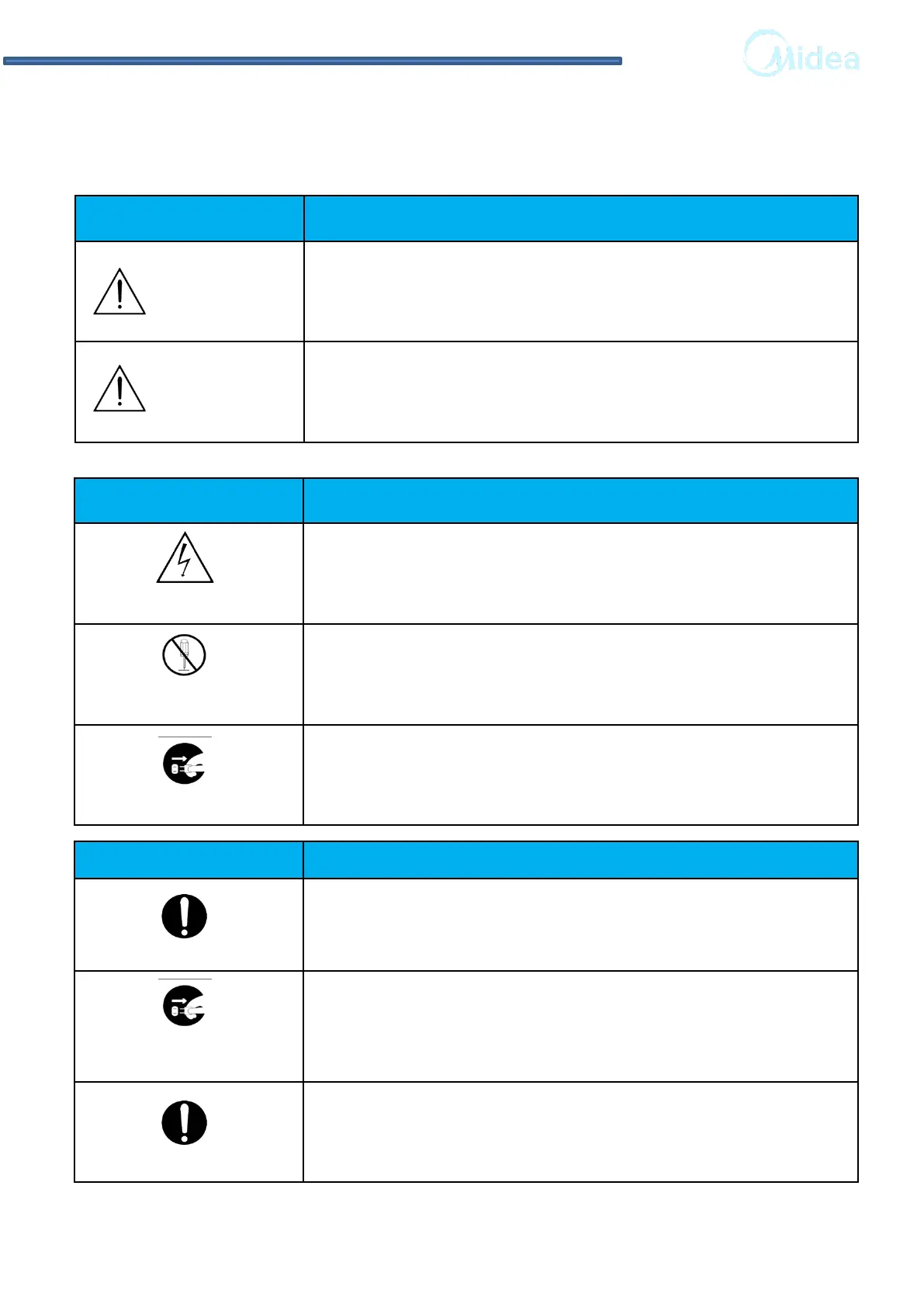 • The symbols indicate as follows.