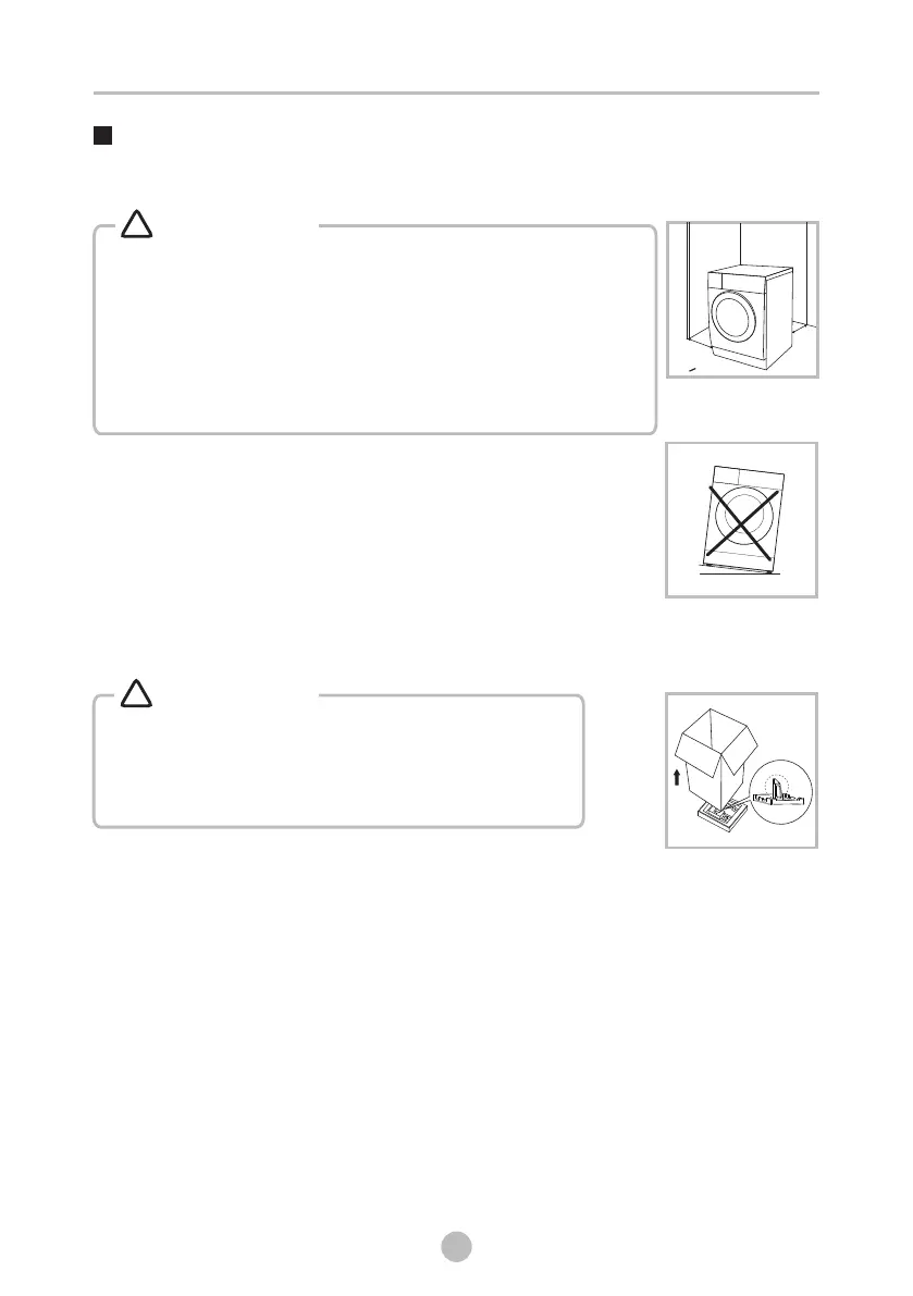 2. Lift the washer dryer and remove the base packaging.Make sure the small triangle