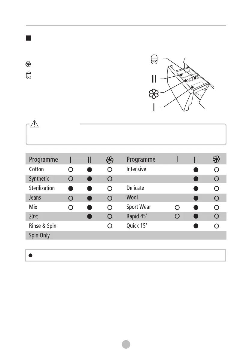 • Detergent only need to be added in "compartment I “after selecting