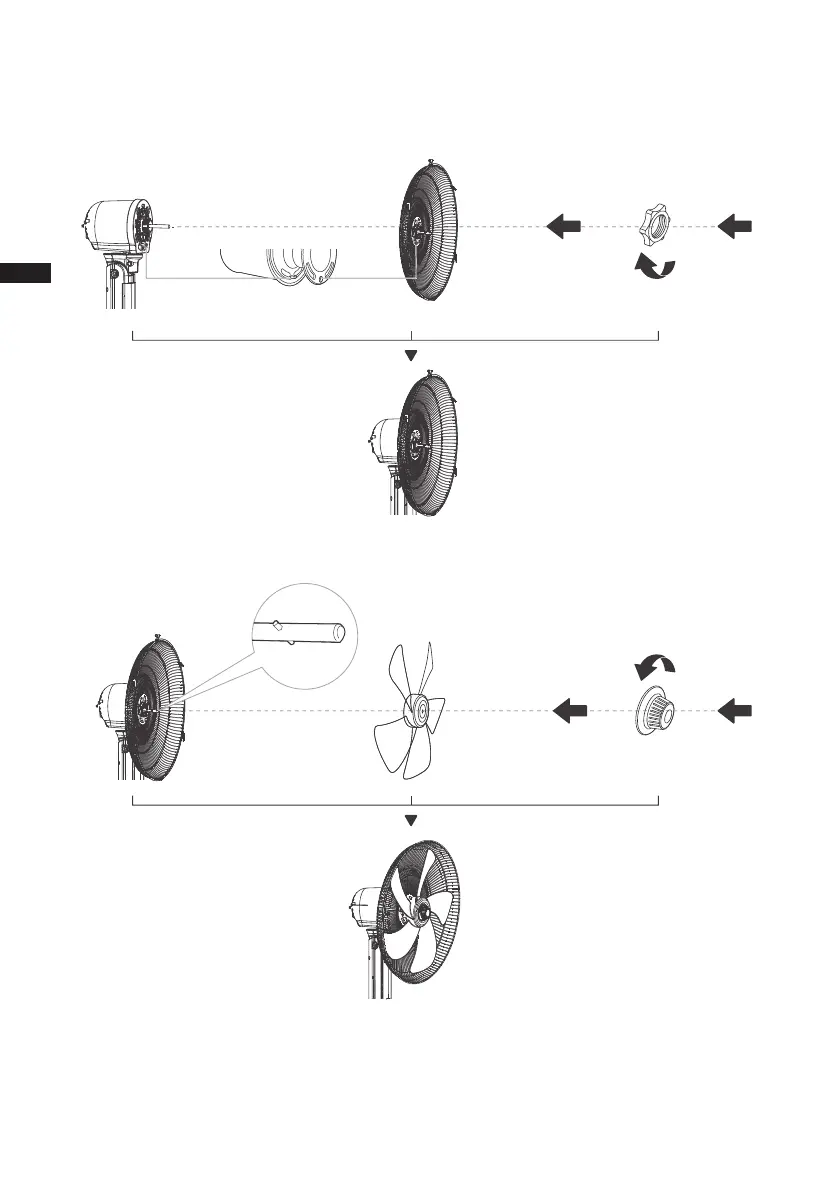 3.2 Align the front cover of the motor and the rear grille, hang them and lock with the