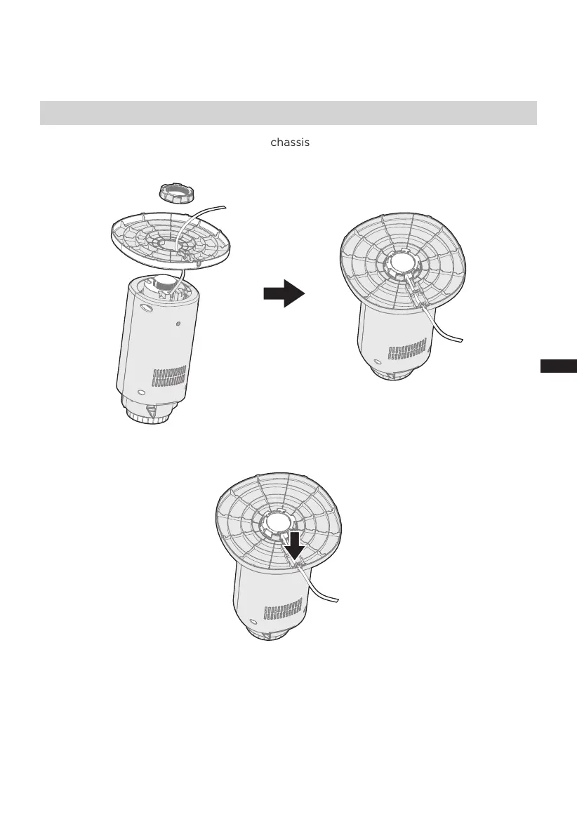 Unpack the box, take out the base and chassis, turn the base upside down, pass the