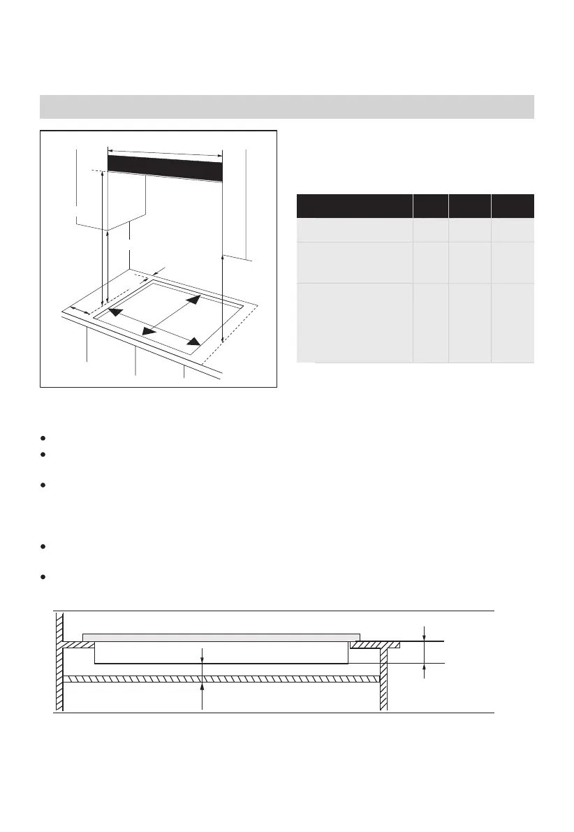surface is in line with the outer edge of the hob. If the underside of the horizontal