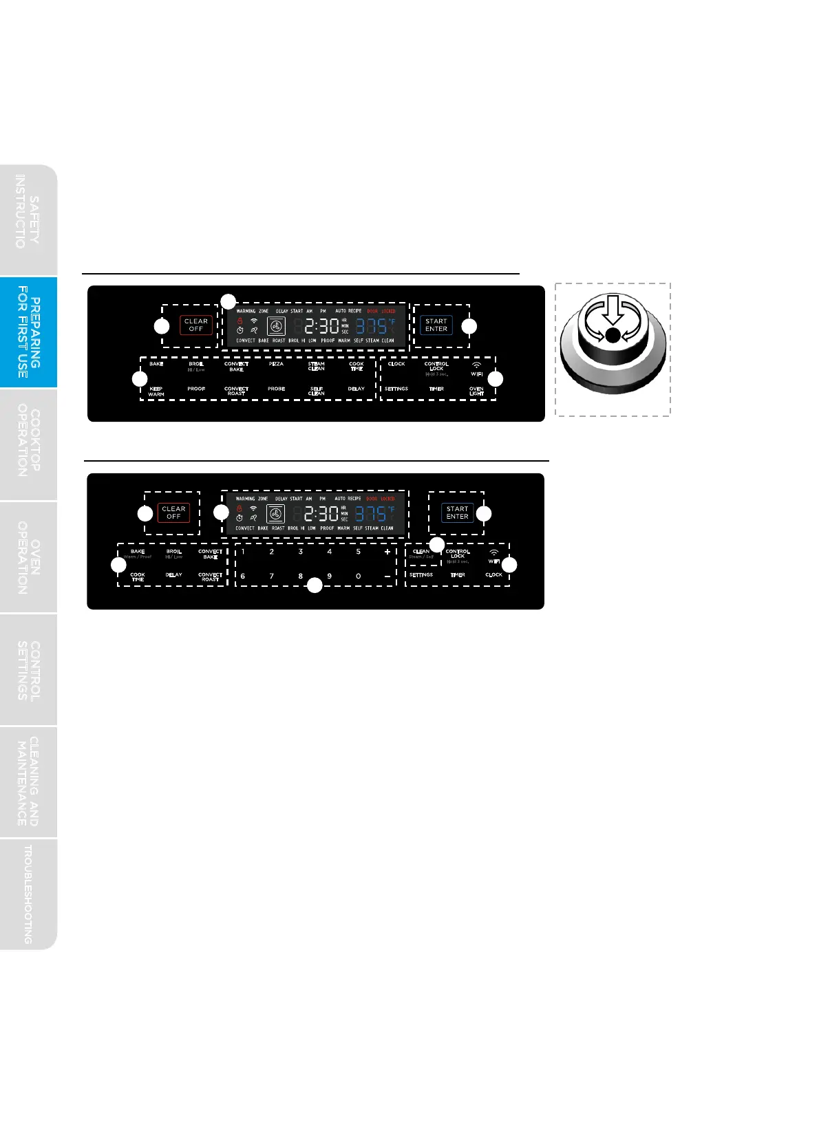 Numeric Input - Used to enter desired oven temperature, set the clock,