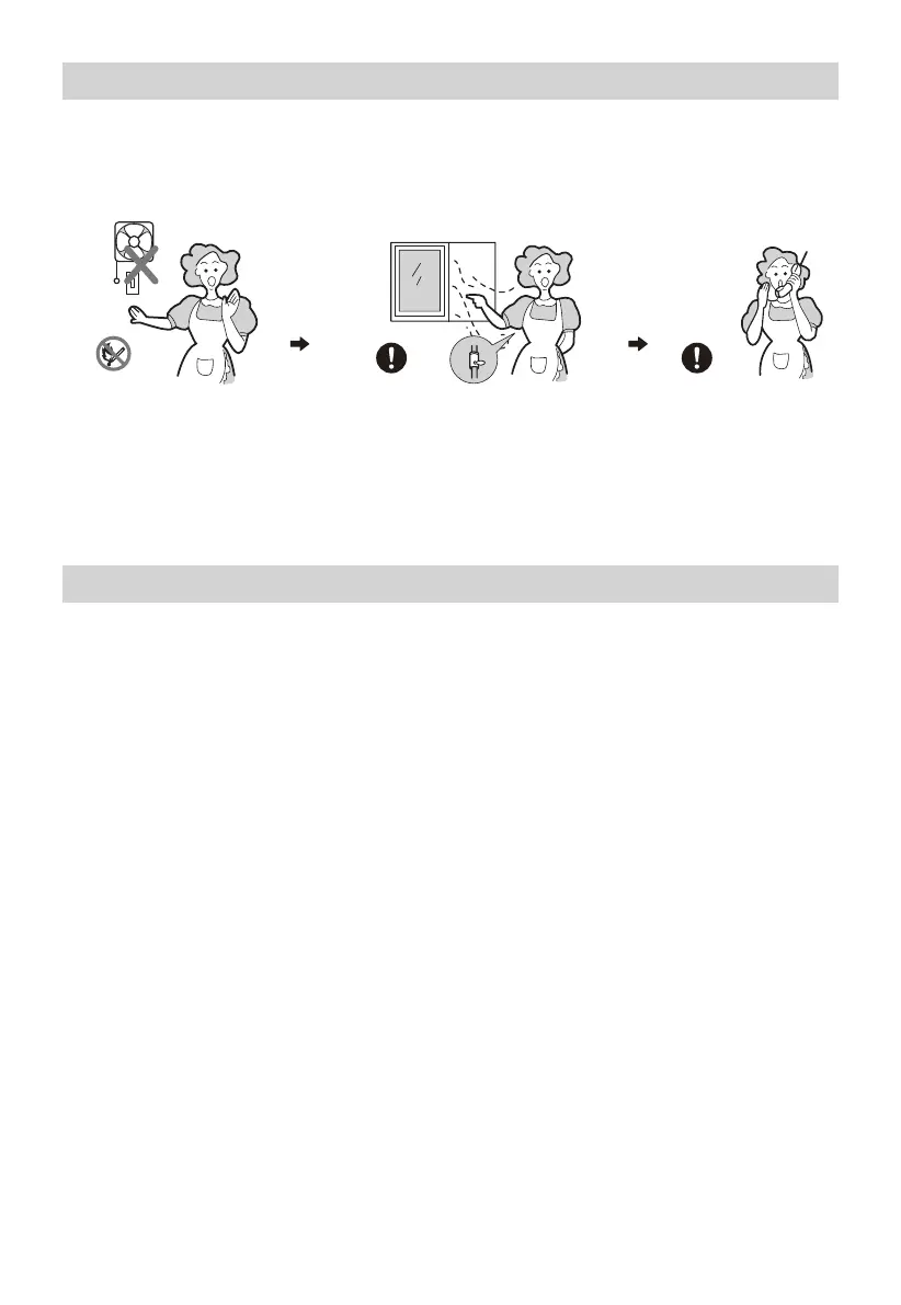 Do not switch on/o any electrical appliance and do not touch any electric plug.