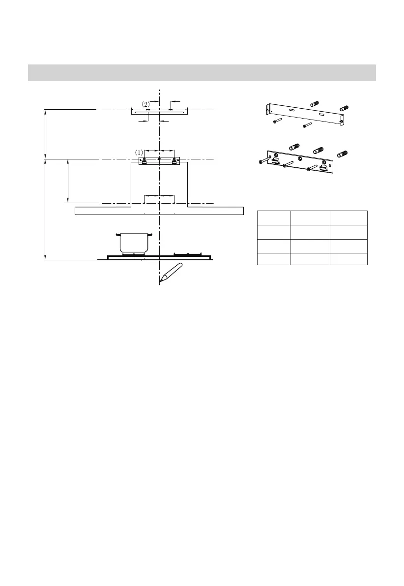 Trace una línea horizontal (A) a 970 - 1070 mm por la parte superior de los quemadores.