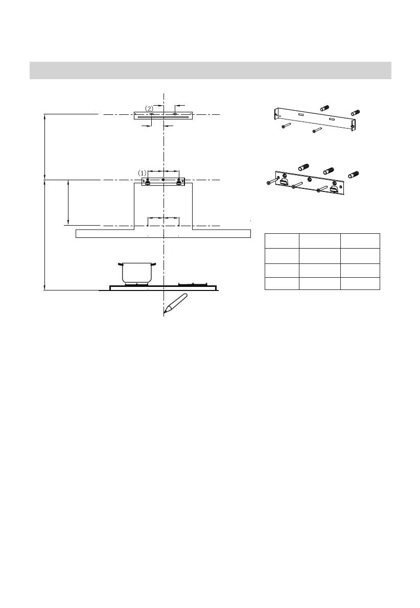 Fix the hood fixing bracket 20 with 3 screws 10 (5 x 50) at the horizontal line A.