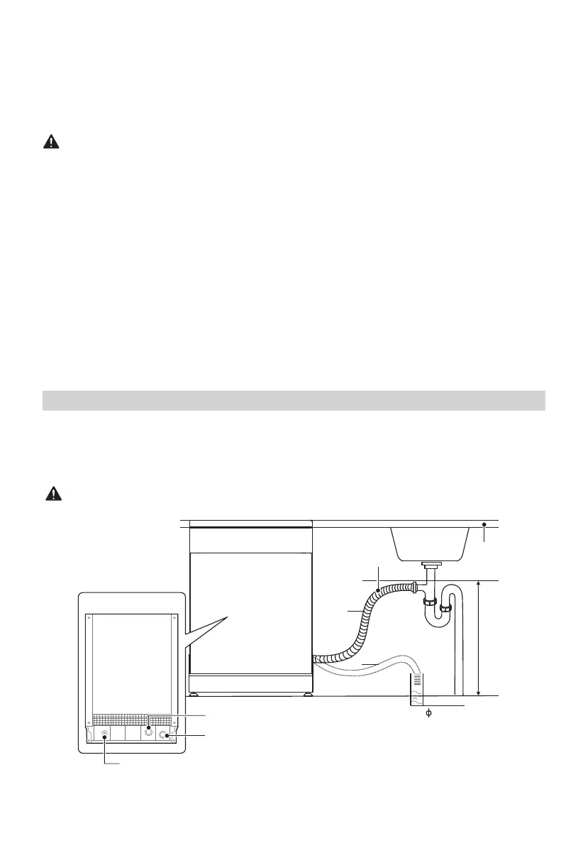 del tubo de desagüe debe ser inferior a 1000 mm. El extremo libre de la manguera no debe