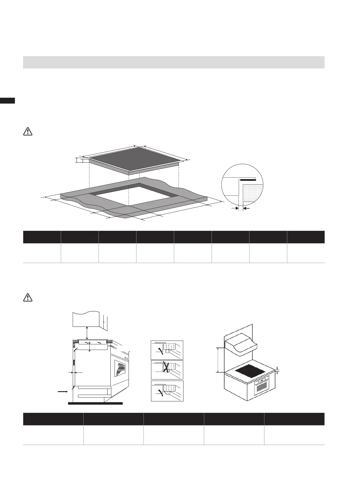 Nota: La distanza di sicurezza tra la piastra e l'armadio sopra quest’ultima deve essere di almeno