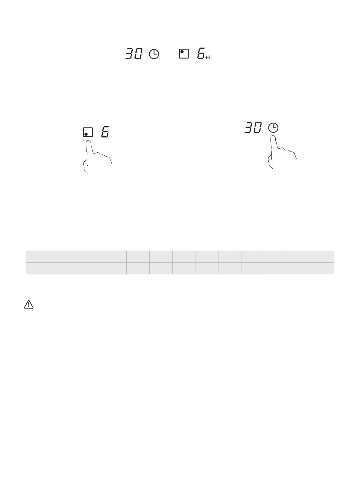 Touch the heating zone selection control, the corresponding timer will be shown in the timer indicator.