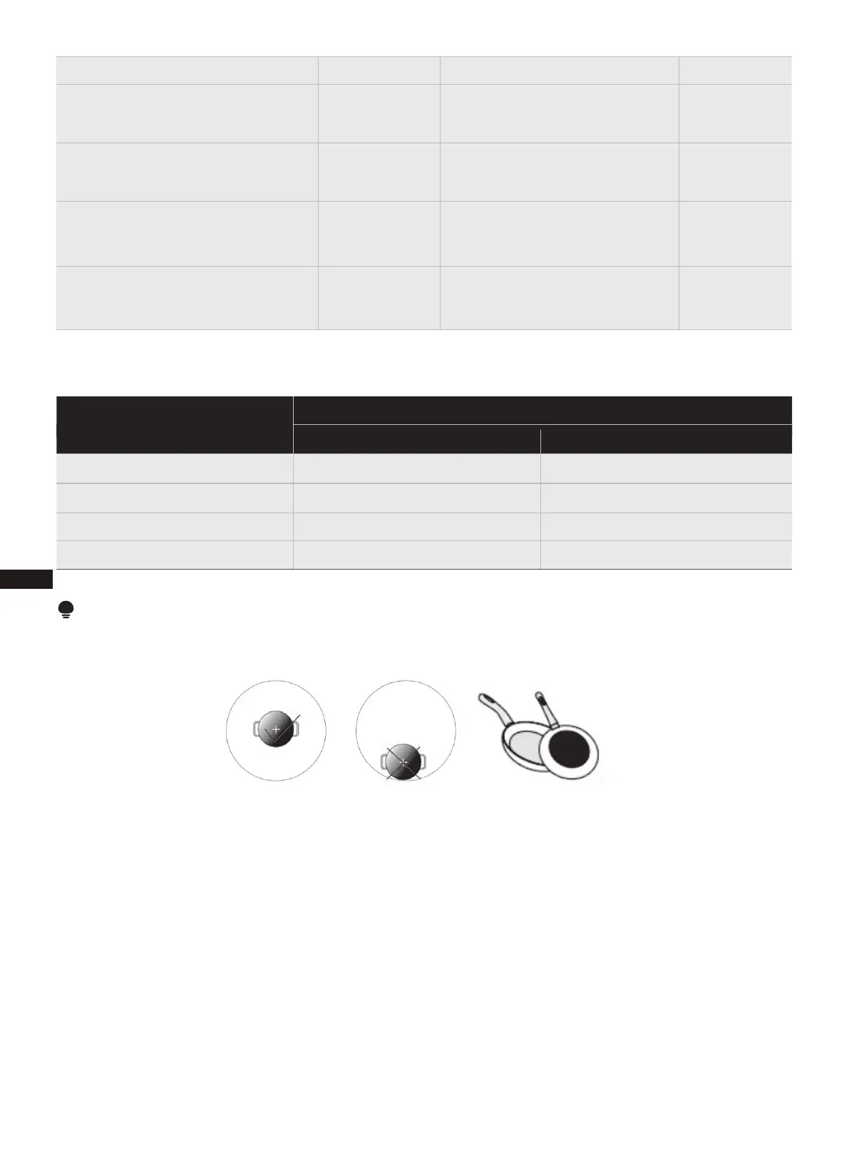 • L'utilisation d'une mauvaise casserole nécessite une plus grande taille pour la cuisson.