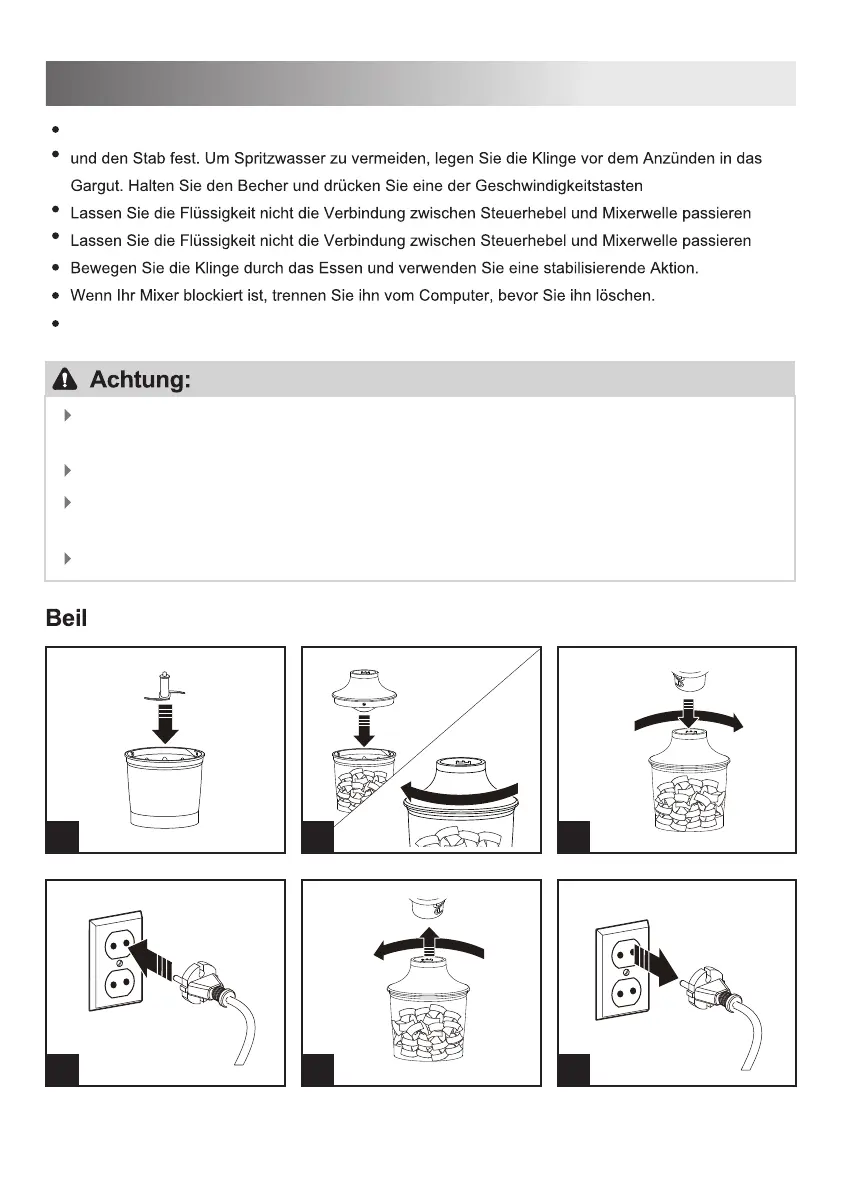 Verwenden Sie in diesem Stabmixer keine Non-Food-Produkte. Dieses