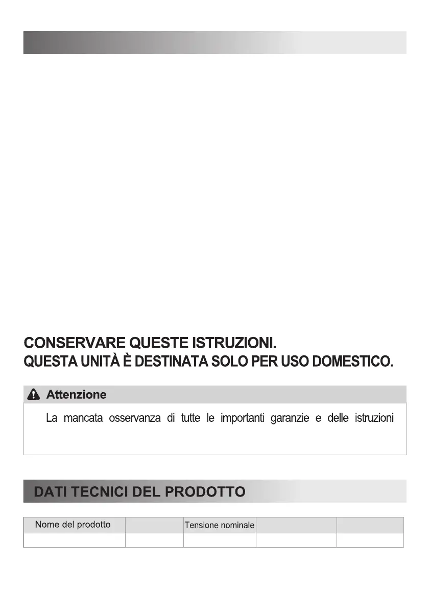 IMPORTANTI ISTRUZIONI DI SICUREZZA