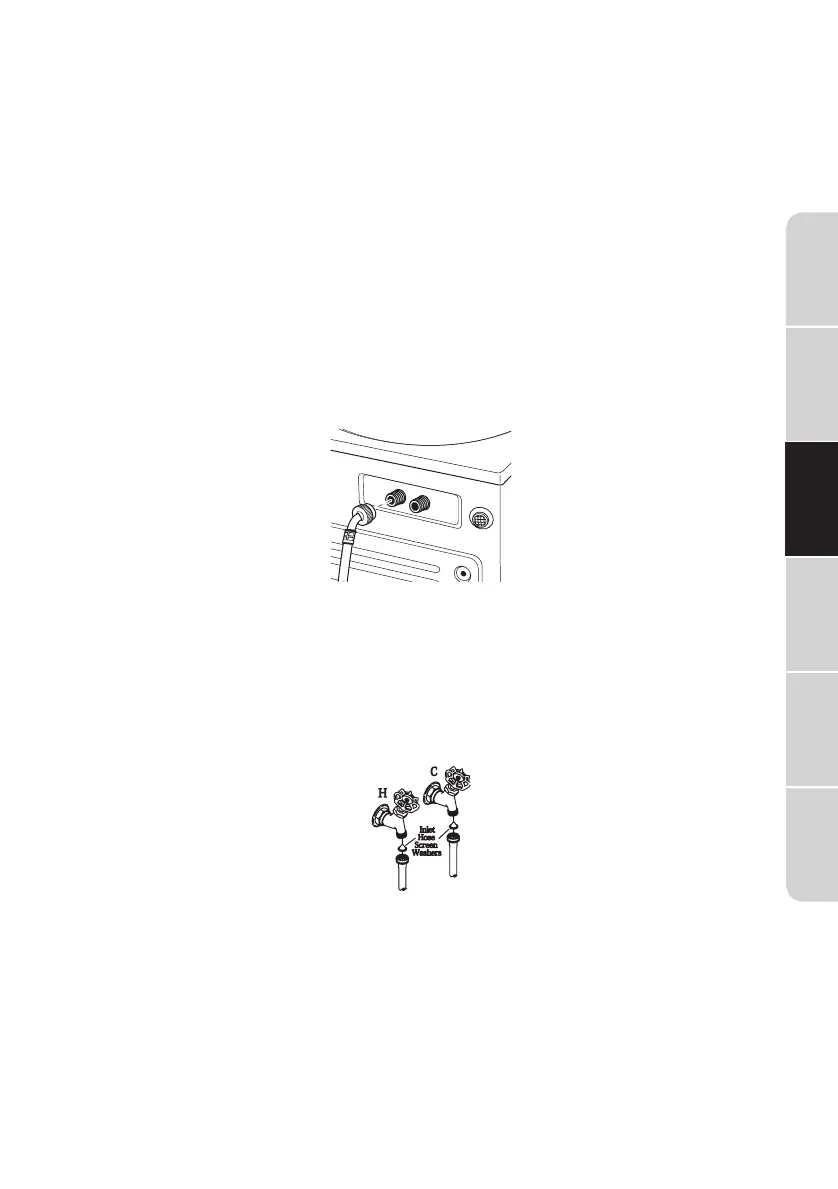 Carefully connect the inlet hose marked HOT to the rear “H” inlet