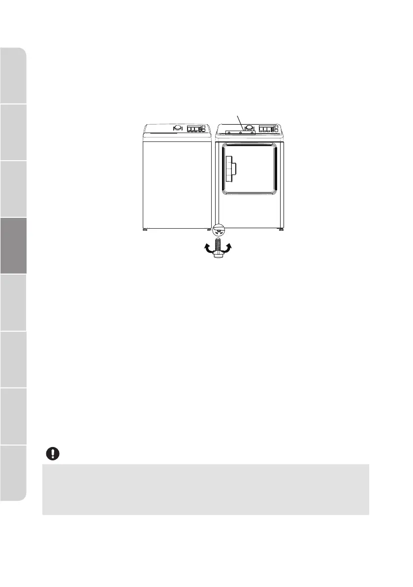 • Adjust the leveling feet only as much as necessary to level the dryer.