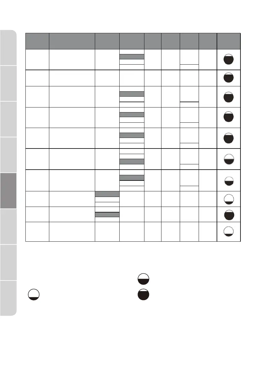 * Table in grey is an initial setting. Y” are all optional functions you can select.