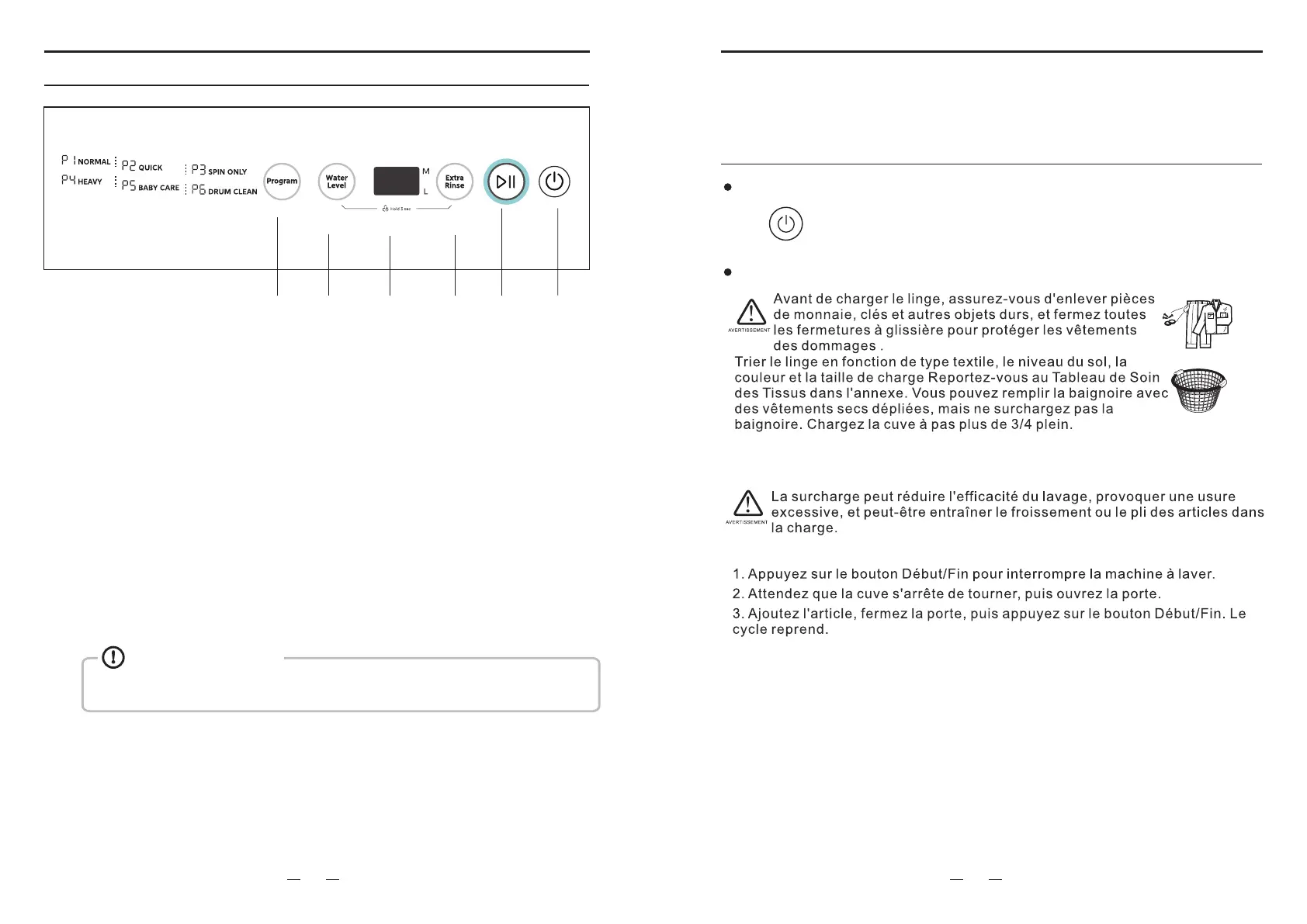 Appuyez sur le bouton pendant le fonctionnement pour mettre le cycle en pause.