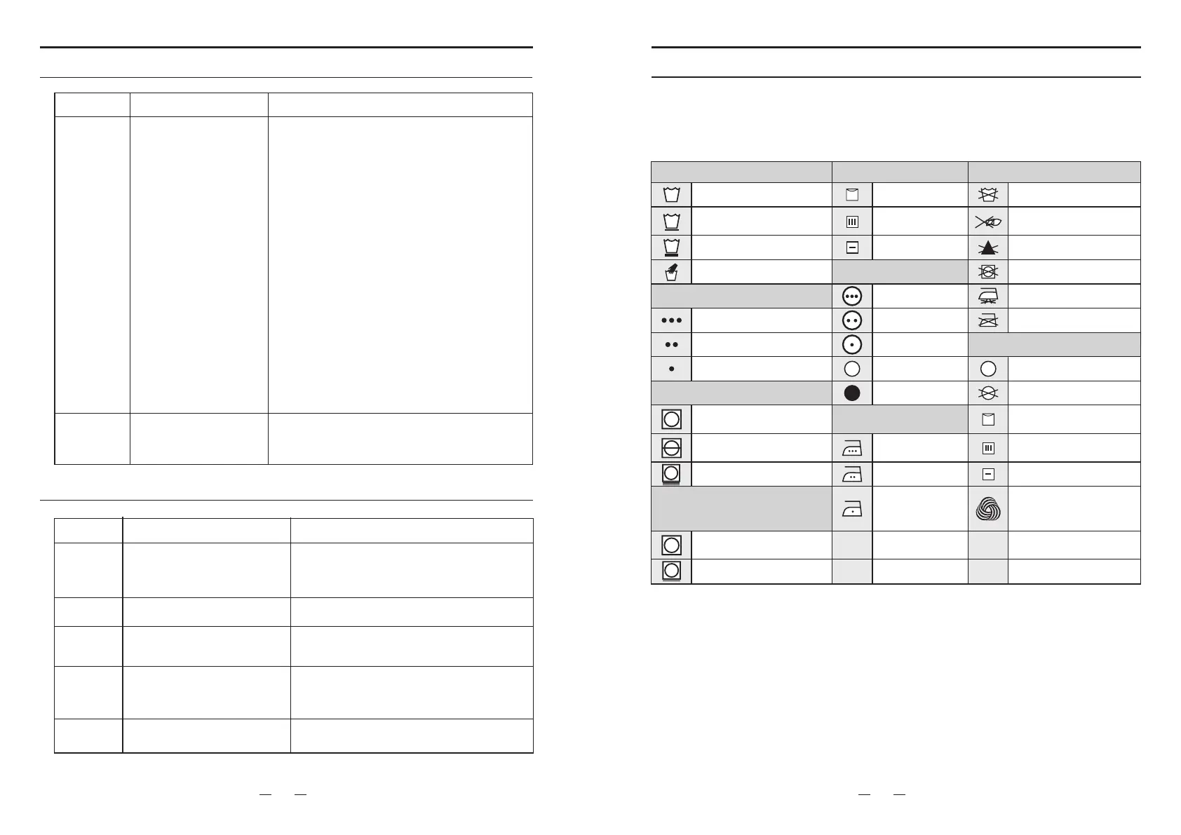 Les symboles suivants expliquent les instructions d'entretien à suivre pour les vêtements.